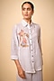 Featuring a white shirt in pure linen base with bunny embroidery. Accentuate it with tailored trousers or a flowing skirt, delicate pearl earrings and elegant heels for a stylish ensemble, ideal for brunch outings, festive gatherings, or semi-formal evenings.
