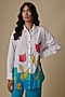 Featuring a white and turquoise shirt in linen base floral applique embroidery. Accentuate it with pants minimal jewellery and heels for a complete look.