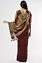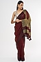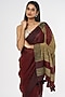 Featuring a maroon saree in pure linen base with contrasting gold pallu. This contains only one piece.