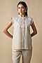 Featuring a beige sleeveless waistcoat in pure linen base. It is paired with pants. Style it with statement earrings and heels for a refined look. Perfect for evening events and semi-formal occasions.