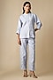 Featuring a soft blue shirt in linen blend base with thread embroidery. It is paired with trousers. Accentuate it with statement earrings and block heels for an effortlessly chic look. Perfect for casual brunches or daytime events.