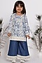 Blue Cotton Kurta Set With Bundi Jacket For Girls