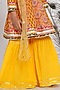 Featuring a citrus yellow kalidar frock kurta in cotton base with patchwork embroidery including floral print. It is paired with matching sharara pants and a net dupatta.