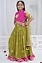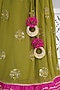 Featuring a green lehenga for girls in viscose georgette and chanderi cotton base with floral embroidery. It is paired with an embroidered blouse and a tassel work dupatta. Style it with hair accessories and sandals for festive occasions, mehendi or wedding ceremony.