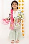 Featuring a white kurta in cotton and cotton silk base with embroidery and print. It is paired with a contrasting mint sharara having tussel and gota work and a dupatta.