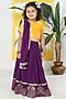 Featuring a purple lehenga for girls in cotton blend base with embroidery. It is paired with a yellow top and a dupatta. Style it with sandals and hair accessories for a festive occasion or rakhi celebrations.
