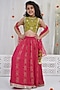 Featuring a rose red lehenga for girls in viscose georgette base with floral embroidery. It is paired with a chanderi silk blouse having floral embroidery and a dupatta. Style it with sandals and hair accessories for a festive occasion or rakhi celebrations.