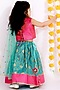 Featuring a teal pleated lehenga in silk banarsi base with tussel embroidery. It is paired with contrasting pink short kurta and a dupatta.