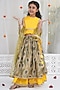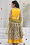 Yellow Chanderi Silk Floral Handwork Lehenga Set For Girls
