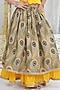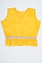 Featuring a yellow lehenga for girls in chanderi silk base with floral handwork and peacock feather detail. It is paired with a cotton woven sleeveless blouse and a dupatta. Style it with cute juttis and a matching hair accessory for an adorable festive look, perfect for weddings, family functions and traditional celebrations.