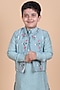 Ash Blue Mul Chanderi Embroidered Nehru Jacket Set For Boys