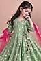 Featuring an avocado green anarkali for girls in mul chanderi base with embroidery. It is paired with pants and a dupatta. Style it with sandals and a matching hairband for a cute and comfortable festive look, perfect for family gatherings, festive poojas or cultural celebrations