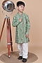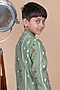 Avocado Green Mul Chanderi Embroidered Kurta Set For Boys