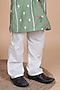 Featuring an avocado green kurta for boys in mul chanderi base with thread embroidery. It is paired with pyjama pants. Team it up with mojaris and watch for a festive occasion or sangeet ceremony.