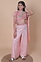 Peach Natural Crepe Palazzo Pants Set For Girls