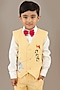Yellow Cotton Blend Applique Embroidered Waistcoat Set For Boys
