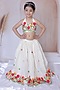 Cream Kora Cotton Thread Work Lehenga Set For Girls
