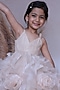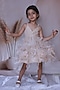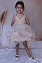 Featuring a golden dress for girls in organza base with handmade floral detail. Style it with sandals and hair accessories for a festive occasion or birthday party.