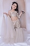 Light Golden Net Embroidered Sharara Set For Girls