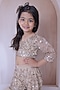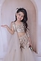 Featuring a light golden top for girls in net, crepe and cotton base with mirror embroidery. It is paired with embroidered net sharara pants and a dupatta. Style it with cute hair accessories and sandals for a birthday party celebration or festive occasion.