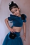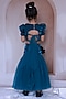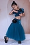 Featuring a pine green skirt for girls in net base. It is paired with a top having handmade velvet floral detail. Style it with sandals and hair accessories for a festive occasion or wedding ceremony.