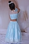 Powder Blue Net Hand Embroidered Lehenga Set For Girls