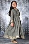 Grey Cotton Floral Printed Shirt Kurta Set For Girls