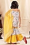 Featuring a white kurta for girls in viscose cotton base with floral print, including lace and gota patti embroidery. It is paired with contrasting yellow cotton satin sharara pants and a chiffon dupatta having gota embellishments.