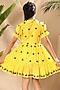 Yellow Soft Cotton Cambric Ladybug Embroidered Flared Dress For Girls