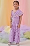 Featuring a blush lilac jumpsuit for girls in organic silk base with embroidery. Accessorize it with sandals and cute hair accessories for any festive occasion.