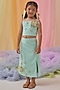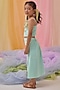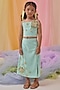Featuring a forested mint skirt for girls in organic cotton base with embroidery. It is paired with an embroidered top. Style it with cute hair accessories and sandals for a festive occasion.