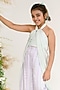 Featuring a mint green overlay in german satin base with knot detailing. It is paired with contrasting lavender votex pants having an elasticated back and a top.