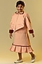 Peach Cotton Slub Skirt Set For Girls