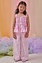 Featuring a sea shell pink top for girls in organic cotton base with embroidery. It is paired with embroidered pants. Style it with cute hair accessories and sandals for birthday parties or evening.
