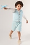 Powder Blue Organic Cotton & Handloom Stripe Waist Coat For Boys