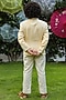 Featuring a yellow suit jacket in organic cotton dobby and mulmul base with stripes. It is paired with contrasting off white trousers. This contains only two pieces.