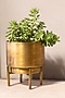 This iron planter features a minimal cylindrical shape attached to a mini stand and is perfect for hosting your succulent and cacti collection. This antique brass planter adds a modern accent and charm to your indoor space.