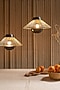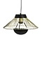 This black and gold distinctive and sculptural pendant light is made from iron threads in a geometric cage shape. The light spills out from the centre to create an eye-catching shadow on nearby walls.
