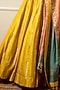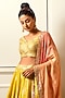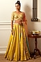 Featuring a lime yellow lehenga in dupion silk and chanderi silk base with embroidery. It is paired with a matching hand embroidered blouse and a tussar silk dupatta.