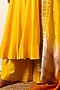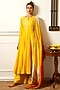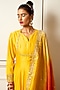 Featuring a mango yellow kalidar kurta in chanderi silk and banarasi base with thread, mirror, and sequins hand embroidery. It is paired with matching flared pants and a tussar silk dupatta.