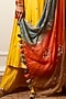 Featuring a mango yellow A-line kurta in chanderi silk base with resham, mirror, and sequins embroidery. It is paired with matching cotton mulmul sharara pants and a tussar silk dupatta.