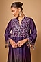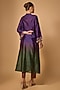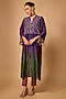 Featuring a purple and green long kurta in chanderi silk and mul cotton base with cutdana and mirror hand embroidery. It is paired with bandhani pants. Accentuate it with zircon earrings and block heels for festive occasions or pooja ceremony.