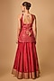 Featuring a ruby red short kurta in kora chanderi, tussar silk, dupion silk and mul cotton base with mirror hand embroidery. It is paired with sharara pants and a multi-colored ombre sequins hand embroidered dupatta. Accentuate it with polki jewellery and block heels for festive occasions, sangeet or wedding ceremony.