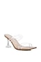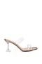 Featuring a pair of beige spool heels in PU base with rounded tube straps and padded insole. It has a synthetic lining, a rubber sole and 3-inch heels.