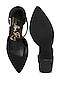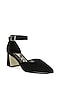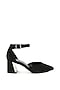 Featuring a pair of black pump block heels in microfiber base with cushioned insole and pin buckle strap. It has a TPR sole and 2.3-inch heels.