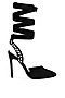 Featuring a pair of black heels in velvet base with lace-up straps and diamante embellishments. It has a leatherette lining, a rubber sole, a cushioned insole and 4.4-inch heels.