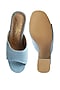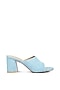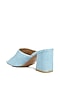 Featuring a pair of blue slip-on sandals in canvas base with an almond toe and padded insole. It has a rubber sole and 2.7-inch block heels.