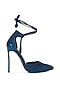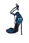 Featuring a pair of blue stiletto heels in microfiber base with ankle lace-up details and cushioned insole. It has a synthetic lining, a TPR sole and 4.5-inch heels.