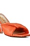 Featuring a pair of orange triangular block heels in synthetic base with pleated strap pattern a cushioned insole. It has a synthetic lining, a TPR sole and 3.1-inch heels.
