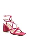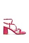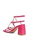 Featuring a pair of pink strappy sandals in suede base with double ankle straps and pin buckle fastening. It has a rubber sole, a cushioned insole and 2.8-inch block heels.